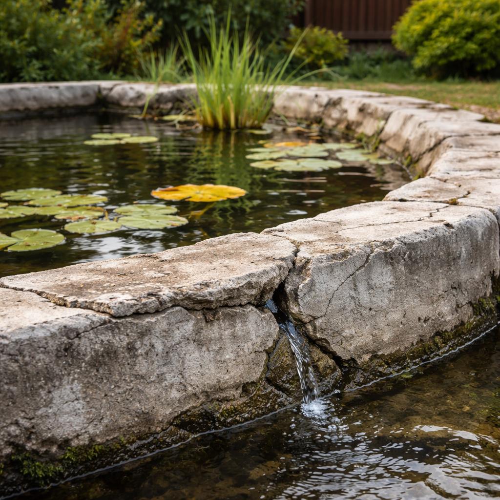 Когда уровень воды в пруду падает, первая мысль — бетон дал трещину насквозь. На практике часто причина сложнее. Влага может уходить через капилляры бетона, через зоны с разной плотностью или по границе между бетоном и другими элементами. Такие утечки медленные, но постоянные, и именно они создают ощущение «непонятной потери воды».