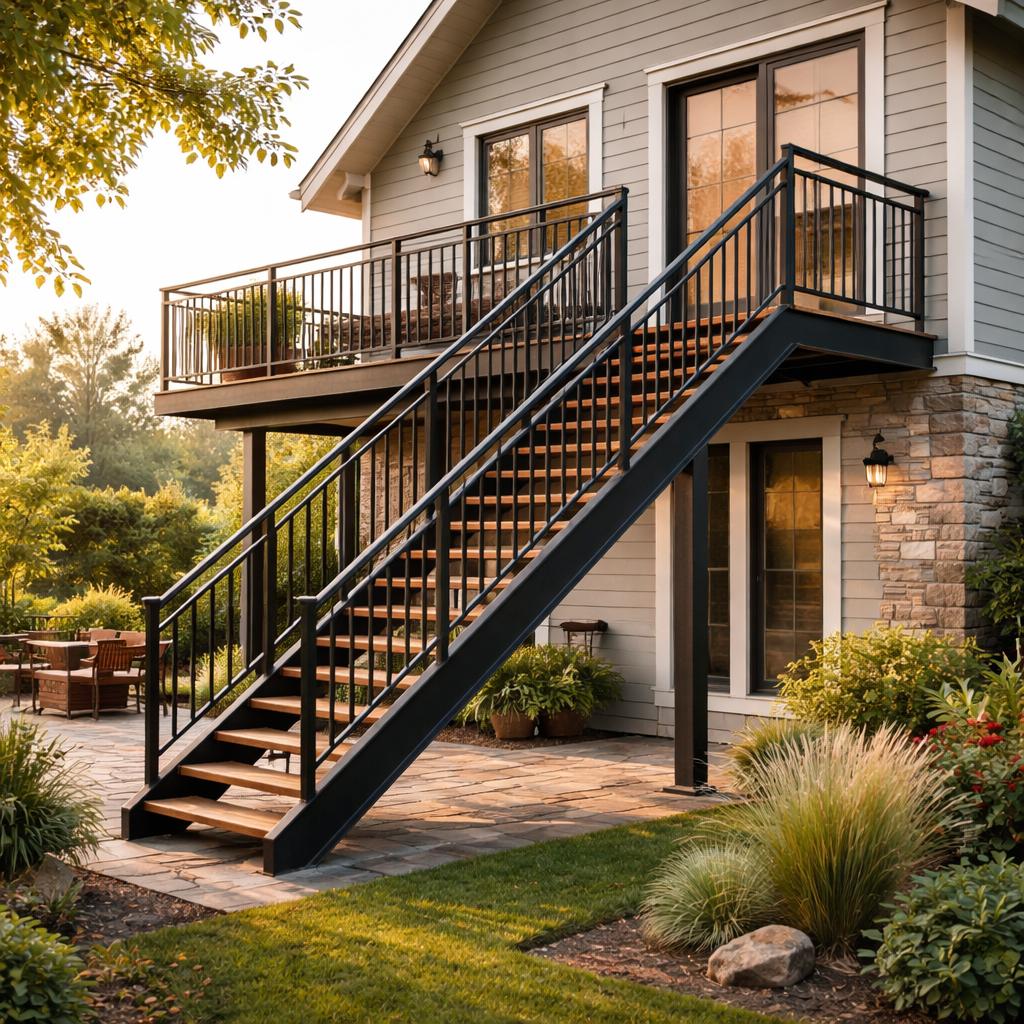 Наружные лестницы могут быть различных типов и конструкций, от простых деревянных до сложных металлических или бетонных вариантов. Все зависит от особенностей здания, выбранного стиля и функциональных требований.