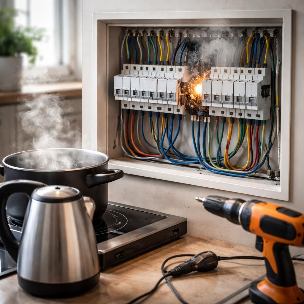 Отсюда типичная ситуация: варочная панель, чайник и духовой шкаф включены в разных комнатах, но сидят на одной фазе. В итоге напряжение на этой фазе проседает, приборы работают нестабильно, а пользователь интуитивно винит «плохую электросеть» или «слабый ввод», хотя по факту проблема в распределении.