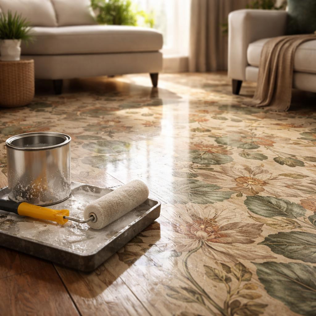 Суть технологии заключается в нескольких ключевых моментах. Во-первых, обои для пола под лак имеют особую структуру, которая выдерживает давление и механическое воздействие, что делает их идеальными для зон с высокой нагрузкой, таких как коридоры, кухни или даже прихожие. Во-вторых, лаковый слой не только защищает обои, но и создает дополнительную декоративную ценность, добавляя полу глянцевый эффект, который усиливает яркость цветов и узоров. Важно отметить, что для такого покрытия используются лаки, устойчивые к царапинам и истиранию, что делает его подходящим для даже самых активных помещений.