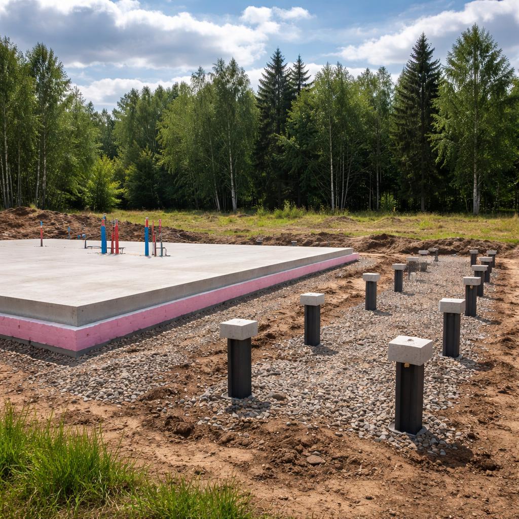 Важно понимать, что УШП и сваи решают разные задачи. УШП работает как распределяющая плита с заранее заданной геометрией и теплотехнической логикой. Сваи работают как система точечных опор, «пробивающих» проблемный слой до более стабильного основания. Когда участок требует и того и другого одновременно, появляется соблазн совместить подходы — и именно здесь закладываются самые частые ошибки понимания.